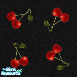 Red cherry pattern on a black plush carpet