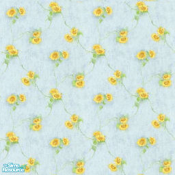 Light aqua is the base for scattered bouquets of sunflowers in this carpet that coordinates with CottageBeadSunflowers and CottageBeadBlue wallpapers. Use in a garden shop, in a child\'s playroom, a sunroom, or a bright inviting kitchen.