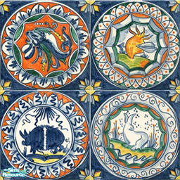 Very colorful, this hand painted Italian tile represents important aspects of 16th century Italy.