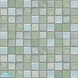 A tile floor in cool, sea-watery colored tiles,