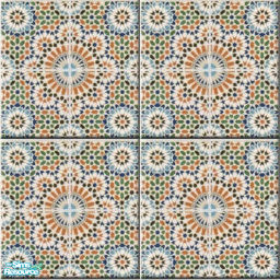 A colourful tile, part of a set.