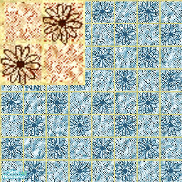 No matter where you are or what time of year it is, you\'re never far from spring with this crazy daisy tile. Has a matching wall. The brown square in the upper left corner is a close up of the beige tile.