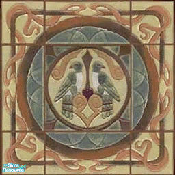 A tile emblazoned with a love bird pattern by wyldsyde flooring.