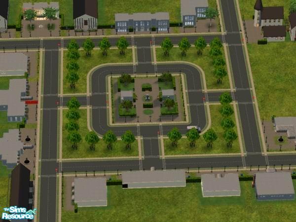 This neighbourhood has a centre square in the middle of town which is a 3x3 sized lot. It\'s a medium size terrain with lots of room to build. It doesn\'t require a camera mod to enjoy, but if you use one, there\'s a beach across the front of the terrain & there are mountains across the back.