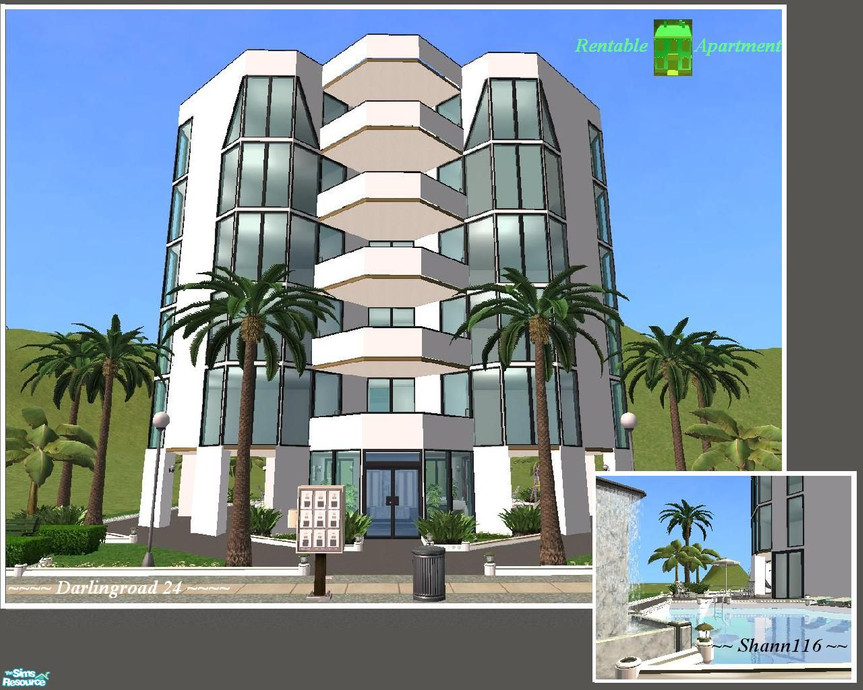 Sims 2 — Darlingroad 24 by Shann116 — Modern 6 floors apartment with 5 rentable units with 6 rooms and 1 bathroom. Lot