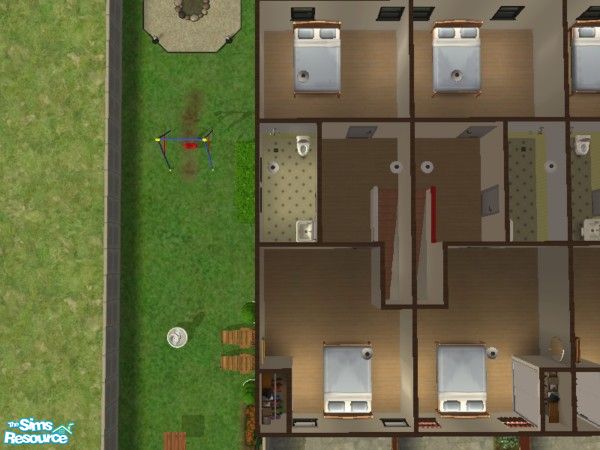 There are 7 Apartments, they are all the same except 1, they have 2 Double Bedrooms, (1 Bedroom in every Apartment has a Closet), 1 Bathroom, Kitchen, Lounge/Diner, they all have gardens, there is a Community area with BBQ and table and chairs. Please do not re-upload, All Maxis/Ea.