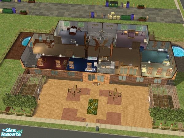 My 1st try on an apartment (duplex). Large duplex with private pools & green houses, 3 bdrm/3 bath & secret entry for access to attic. Has large common area out front. A bit on the pricy side but well worth it. 12,633 & 12,676. Sim tested & approved, hope your Sims like it too. No custom content.