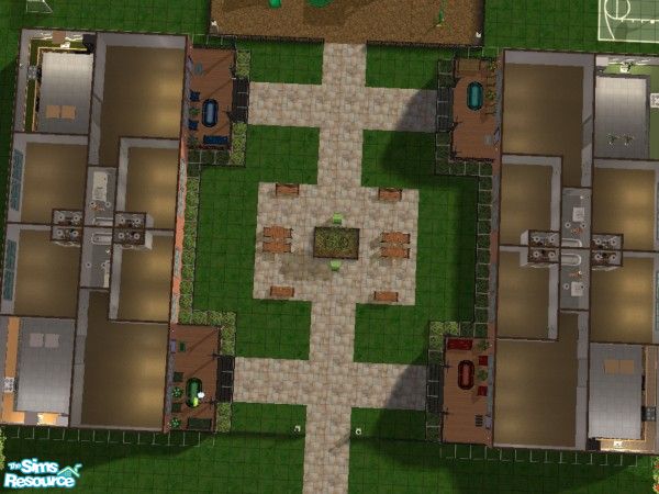 Small complex, 4, 2 bedroom 1 bathroom apartments, includes playground, bsketball hoop, and soccer. Great place to live, nuetral colors so you can decorate to your hears content!Sim tested, easy to play.