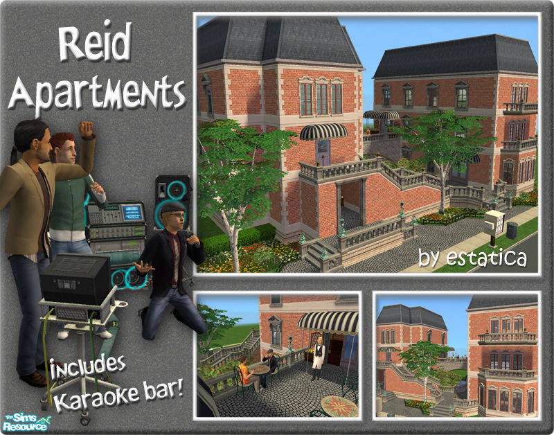These apartments were made for your bachelor sims looking for room mates. In this small lot they will find plenty of cool places to hang out and learn new skills. Don\'t forget to check out the new karaoke bar! *Maxis Content Only*