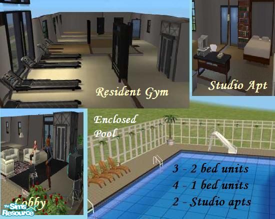 Need an affordable furnished studio apartment? Renada Studios has 2 studio apartments (to rent the furnished apartment you must use Ctrl-Shift-C, then type: boolprop testingcheatsenabled true). 9 various-sized units and gym available.This complex has a fully enclosed pool for all-season enjoyment.