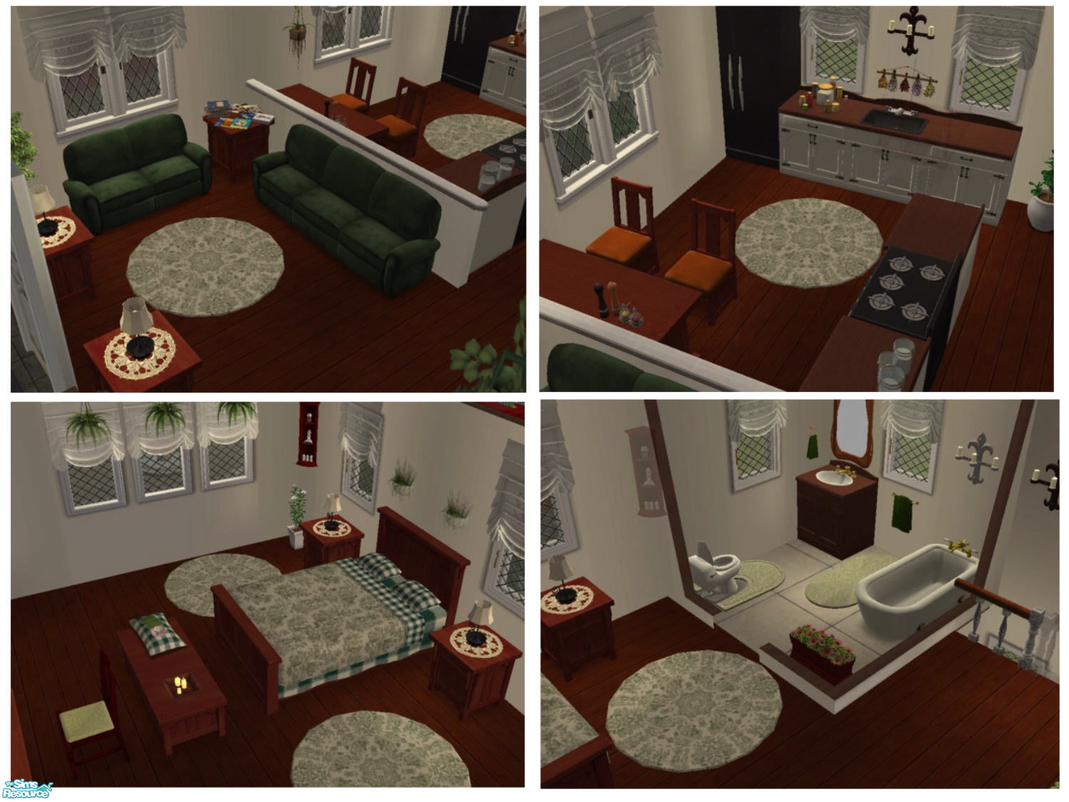 Does your medival Sim need a place to stay that is only temporary until finances enable he or she to buy their own home? Then Stonehedge Dwellings is the place to go. This multifamily dwelling has four fully furnished apartments, a lovely patio area, a place to fish and two gazebos available.