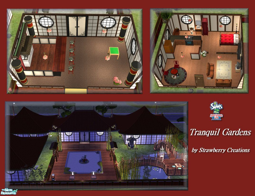 A peaceful haven where your sim can sit back, relax and recharge after a long day at work. This exclusive communal living development was designed with the single sim or childless couple in mind. There is a communal dinner, zen garden, hot tub and tea platform.