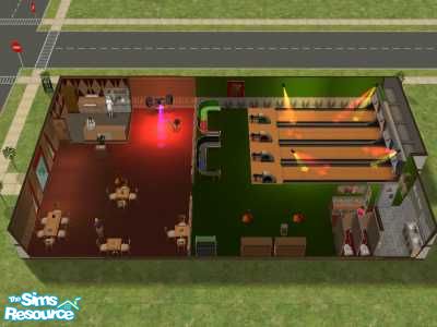 Includes restaurant, bathrooms and ofcourse bowling lanes.