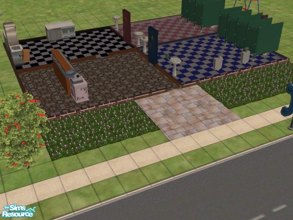 This is a small community lot that has what you need to start a bakery. And a few swings and grill for sims to have other things to do.