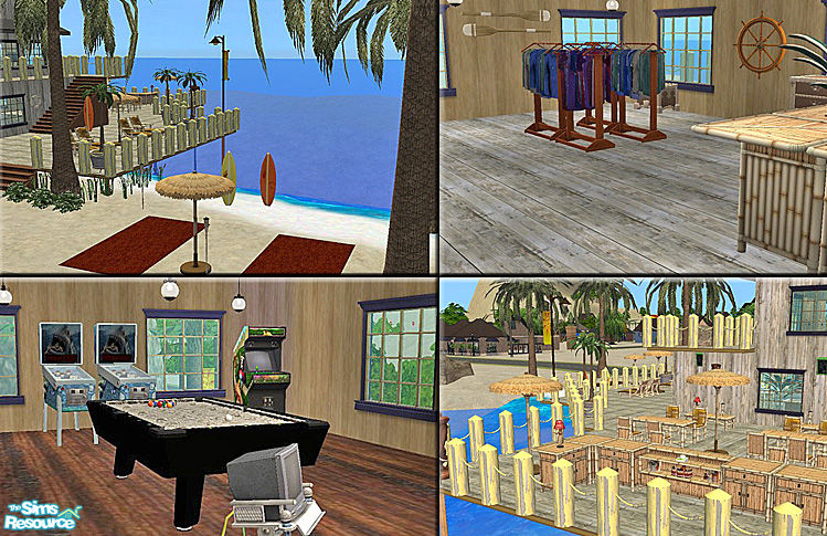 Overlooking the beautiful beaches of Simmville, this Surf shop has much to offer. A Bar off the pier for your pleasure, game room, and of course Shopping!