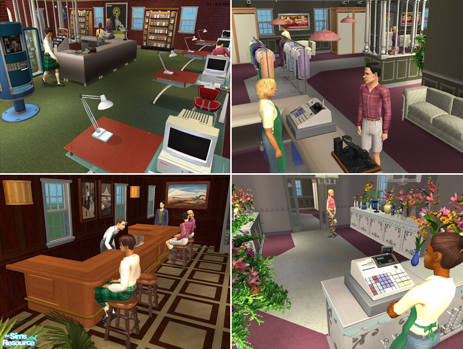 This small lot (2x2) is a great place for your sims to hang out and make new friends. Have fun exploring all the shops! Includes bar, coffee shop, clothes shop, flower shop and entertainment centre. *No Hacks, Maxis Content Only*