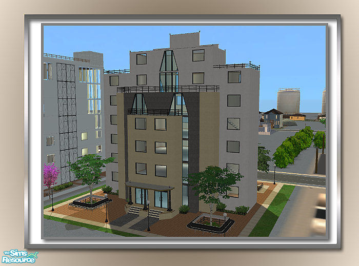 Modern commercial building. Use as a community lot or neighbourhood decoration.