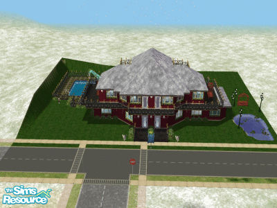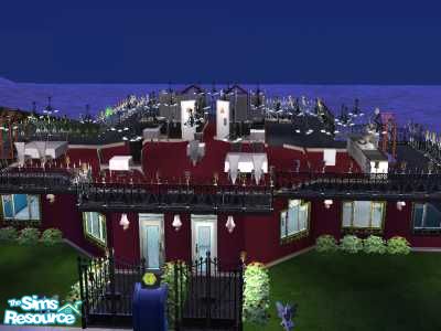 Upstairs your Sims can enjoy fine dining at our 5 star restaurant. Also features pond, pool w/ hot tub, & bbq area