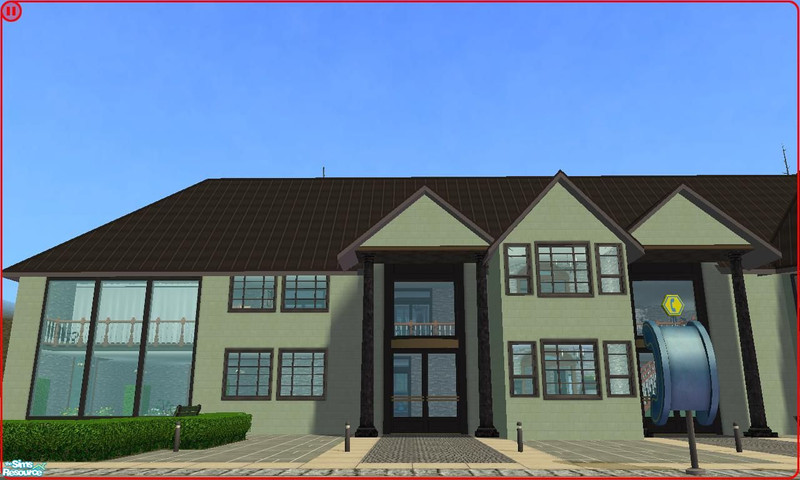 The exterior of the building has a large fountain and swings for younger Sims.