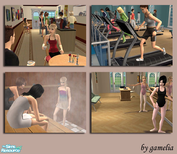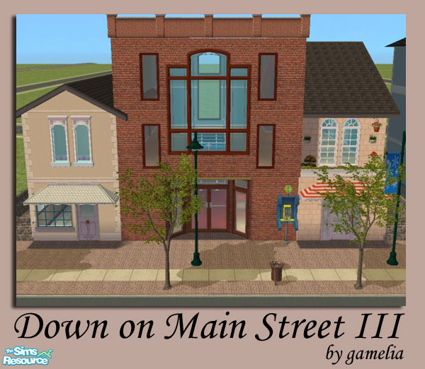 Traditional shops, newly renovated: Poster House Cafe, Little Darlings Ballet Studio, and Slim Jim\'s gym. Have an espresso, work off some fat, or sweat it out in the sauna. The 3rd in a series of Main Street shops (or High Street shops). Sim tested-Sim approved! 2x2 flat lot. No custom content.