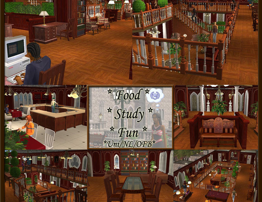 Nostre Sim Student Union is the perfect place for sims to experience University Life! Full library including computers and study desks, cafeteria, gaming/TV area, bathrooms on both floors, balconies, and more! Fully tested - Clean Pack Upload! Lot size - 4x4