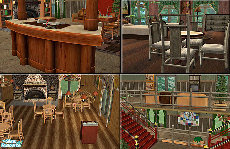 **Requires Bon Voyage** This lodge is perfect for your Sims who enjoy Mountain Retreats. A full service restaurant and plenty to do! Fishing, Archery, Campfires, or the relaxing Springs Spa.