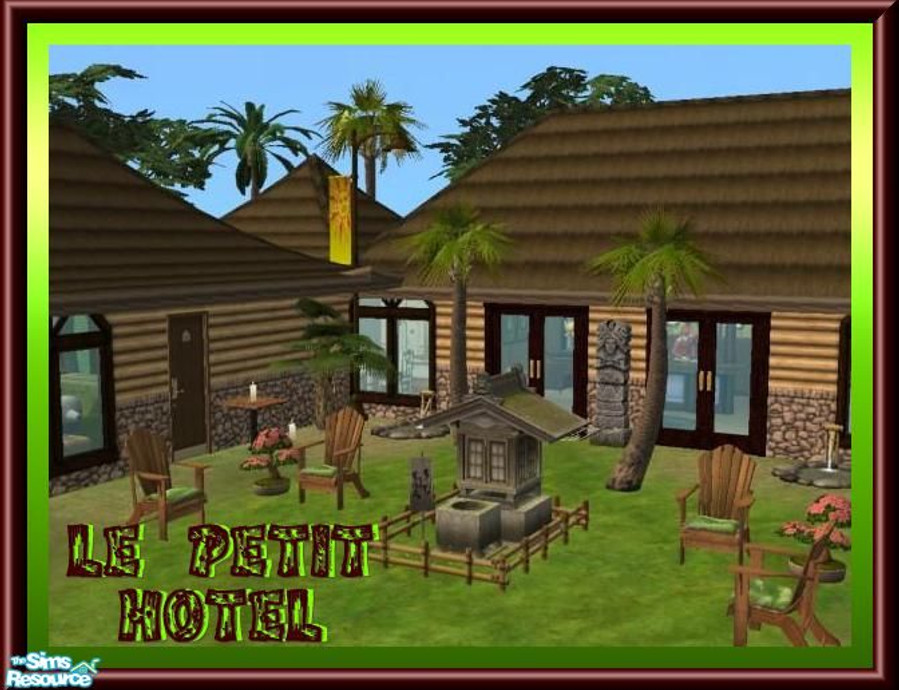 In the front of the hotel is a little oriental garden, with a wishingwell and nice chairs to relax. In the restaurant, the cook offers you a nice diner!! When your done with your meal, you can watch tv in the cosey corner with the other guests or relax to read a book. Wishing you and your Sims a Bon Voyage!