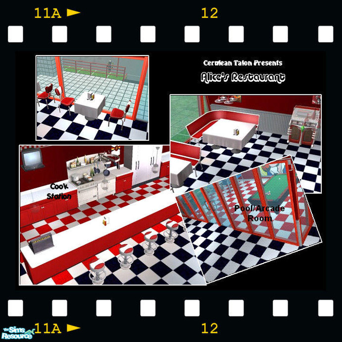 Drive-in or dine-in, this restaurant will attract hungry Sims from all over the neighborhood. Alice\'s is ready for a Sim to make a fortune while enjoying the retro feel of the 50s. The first fast-food place with the flavor of a small town. \"You can get anything you want at Alice\'s Restaurant!\"