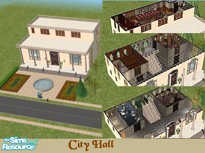 Government building for your Sim neighborhood with cafeteria, Mayor's Office suite, Town Clerk, Records Hall, Court Room and Judge's Chambers. 3x3 lot. No custom items.