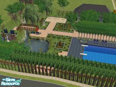 This members only garden is for the more distinguished Sim, who wants to get away from the daily grind. Relax by the pool and it's Jacuzzi or reserve the VIP Jacuzzi with outdoor fireplace. Near the center of the grounds is the famous spring fed pond where Simian Pure bottled water is collected.
