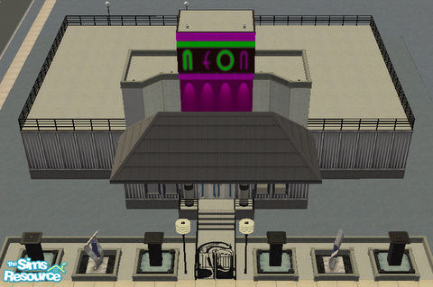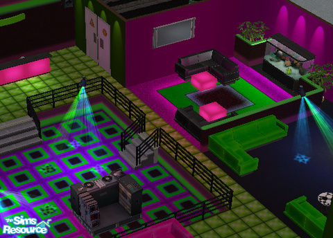 This stylin\' club looks drab on the outside but blasts with color on the inside! Lots of dancing and seating for the clubbin\' sim.