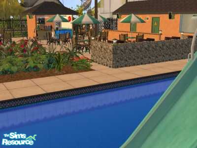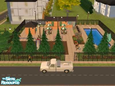 This is a small park where your Sims can play chess, mahjong and go swimming. There is also an espresso bar and \"juice\" bar. There are plenty of grills at your Sim\'s disposal and a small area for pets.