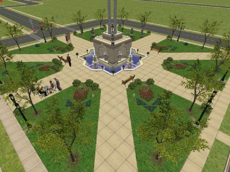 Meet new sims around this beautiful Baroque fountain. These plazas also look great in the neighborhood view.