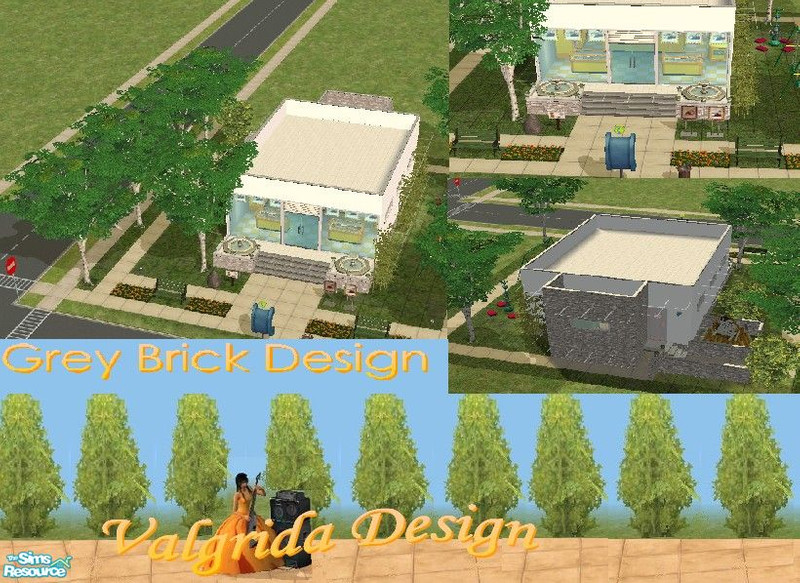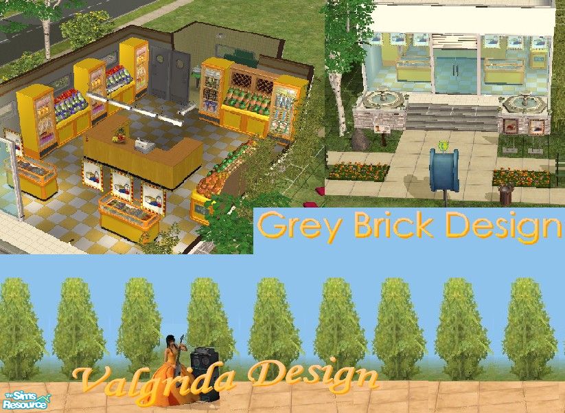 Grey Brick Collection: GBC Food Store is on a small community lot, yet it can offer the daily bread for a huge population of sims! Kids can swing while you shop. Be careful with the garbage pile on the back yard, it may burn easily!