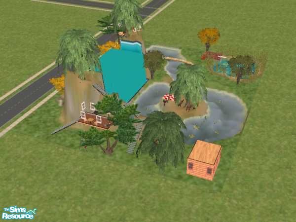 A 100% natural park. Feauturing a waterfall, a pond, a swimmable pond and two tree houses.