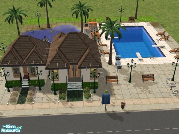 This beautiful shopping center features a large pool, plenty of BBQ, pond, games and more! It's a relaxing experience for all sims alike!