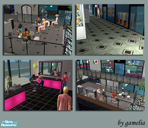 Shopping mall on a 3x3 flat lot; 2 floors. Can be used as a community lot or purchased as a business lot for $300,671. Includes clothing shops, beauty salon, book shop, food court, music store, flowers & gifts shop, pet shop, arcade, and more! MAXIS ONLY CONTENT. NO CC. NO HACKS.