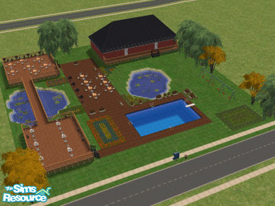 thers a pool,2 BBQ areas,chest tables, swings,seating,lights and flowers