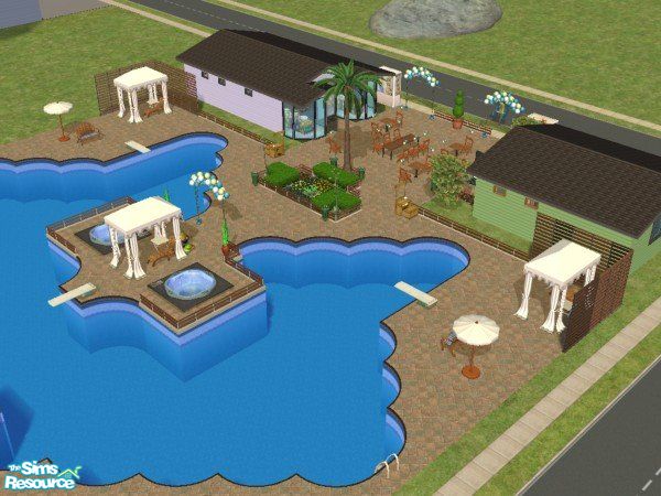 Credits: modern fence very high & modern fence very high quarter (white) by lirunchik, glamour canopy by alb@n, Leyris poolladder by mira, dish aeration device by MsBarrows, Maya Refrigerator by BitzyBus, Snack Cabinet by fresh-prince
