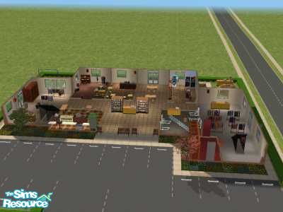 Based on a mall in my hometown. Has 2 clothing shops, Video store, Restaurant, outdoor market, and much more. 4x4 lot. All maxis content.