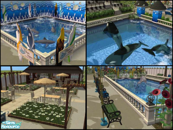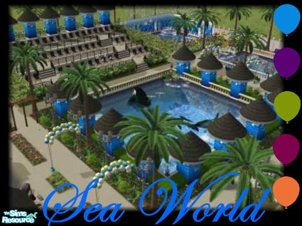 MAXIS ONLY VERSION! One of the most visited theme parks in the world has now come to your town! SEA WORLD!! Come taste the tropics in this beautiful land and see all the wonders of the ocean! NO CC! Links provided below for killer whale, dolphin, and shark downloads, which are pictured, but not included. Hope you Enjoy! Lot works great! Link to CC version provided below.