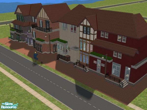 A small street filled with shops for your sims to enjoy! Flower shop, toy shop, coffee shop, hairdresser, clothstore, petshop, games shop, food store and a diner.