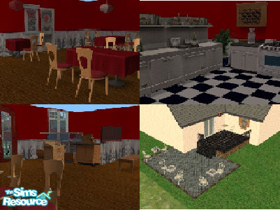 This restaurant is for those sims of yours that want to dine out. There is a small cafe in the front and chess tables outside.