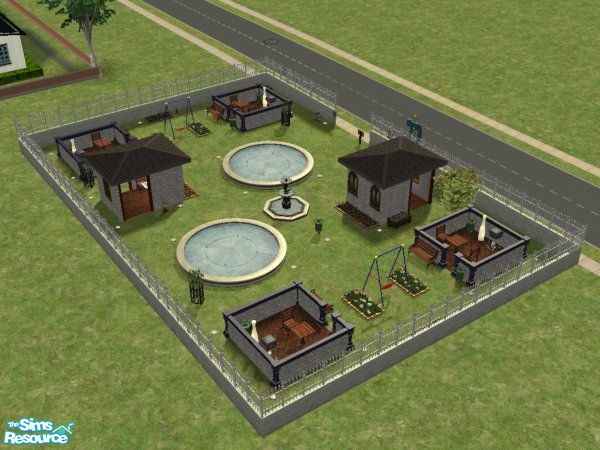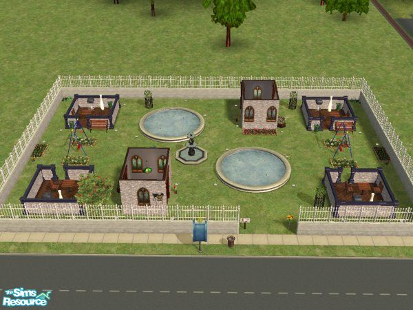 A pretty little park(my 1st) I made inspired by the stone wall i found in the game. I think it\'s a nice little park to go on a date or to bring the kids to. Play a little chess, bring your inner child back with a swing, grill some yumminess and meet some new people!