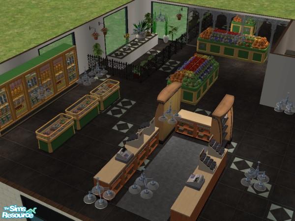 A Convenient Grocery Store for your Sims. All Maxis content except one plant. This says it requires OFB, but I think this will work as a regular community lot too.**Does NOT include cars** (Simslice.com)