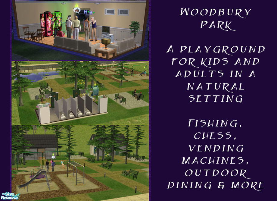 A great place for the family to spend the day. Woodbury Park features a lovely fishing pond, outdoor dining, bathrooms with showers, chess tables, indoor dining with vending machines, a TV for rainy days or so that Dad doesn\'t have to miss the big game, and a playground. Maxis Only.