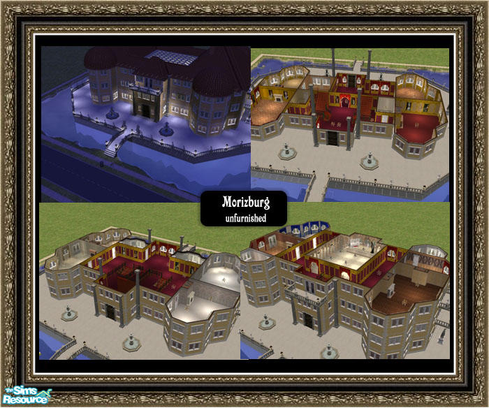 A large castle inspired by Schloss Moritzburg near Dresden, Germany. The castle is unfurnished and partially decorated. I used Maxis items and some TSRAA walls, floors and decorations.