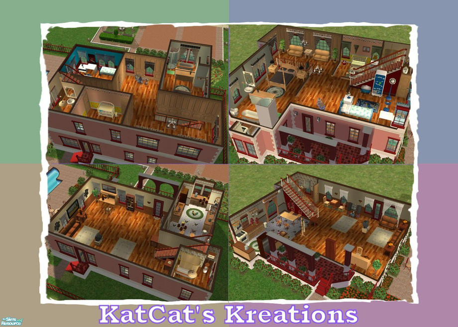This 2-story with 2-tile wide by 13-tile long attic is a must for your discriminating sim. Features: pool, greenhouse, garden area, 2-car driveway. 3BR, 3BA, kitchen with dining room, and large living room. Plenty of yard space for gardening and play.