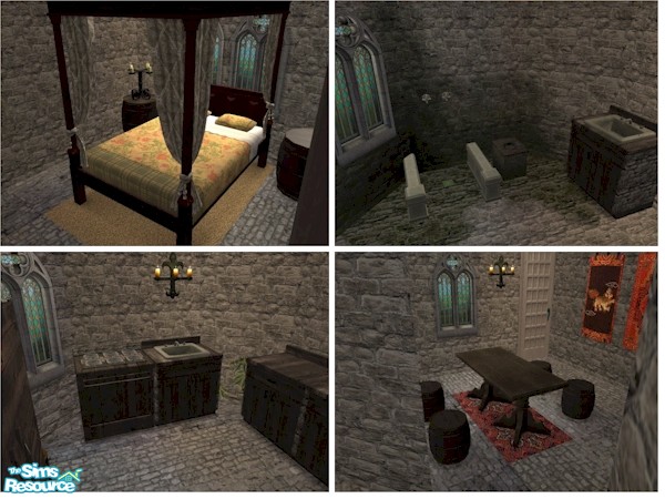 Sir Geraint moved in to Cafor Castle and furnished it with his few possessions. All are TSRAA items. Make sure you download the medieval toilet set from this page if you want these to show in your game.