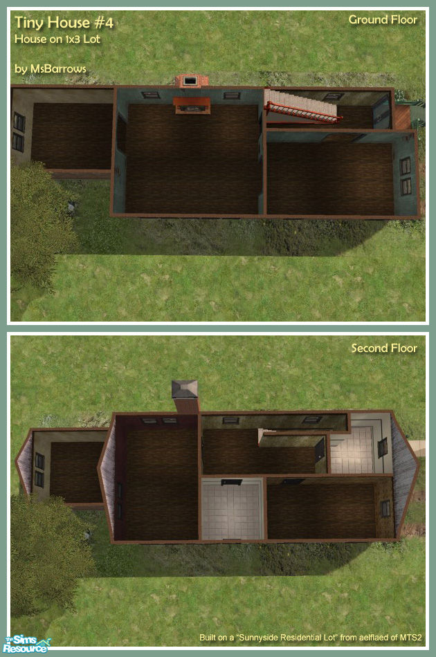 A tiny starter home on a very tiny lot! This aged and modest dwelling sits on a mere 1x3 lot. It has a kitchen, spacious dining room, living room, upstairs and downstairs hallways, two bedrooms, and two bathrooms. Plus enough room in front for a driveway, if you have OFB.<br><br>Base game compatible!
